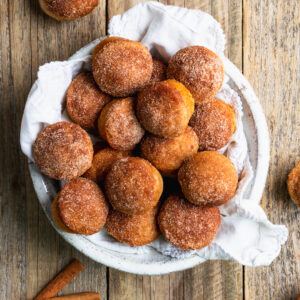 - Melted butter: There is melted butter both in the muffin batter and for dipping the warm muffins into before coating in cinnamon sugar.