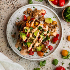 - Avocado: You can sub guacamole or leave it off, but taco bowls just call for the most toppings possible.